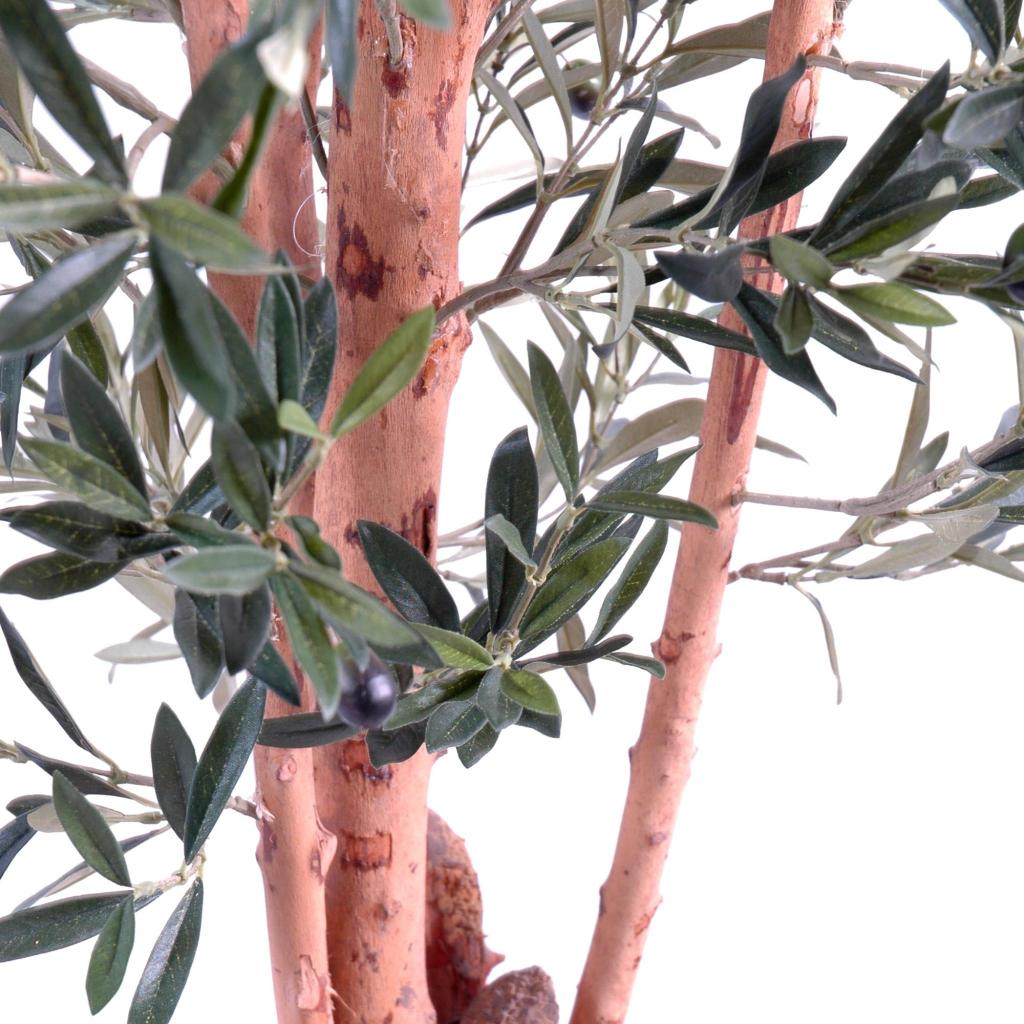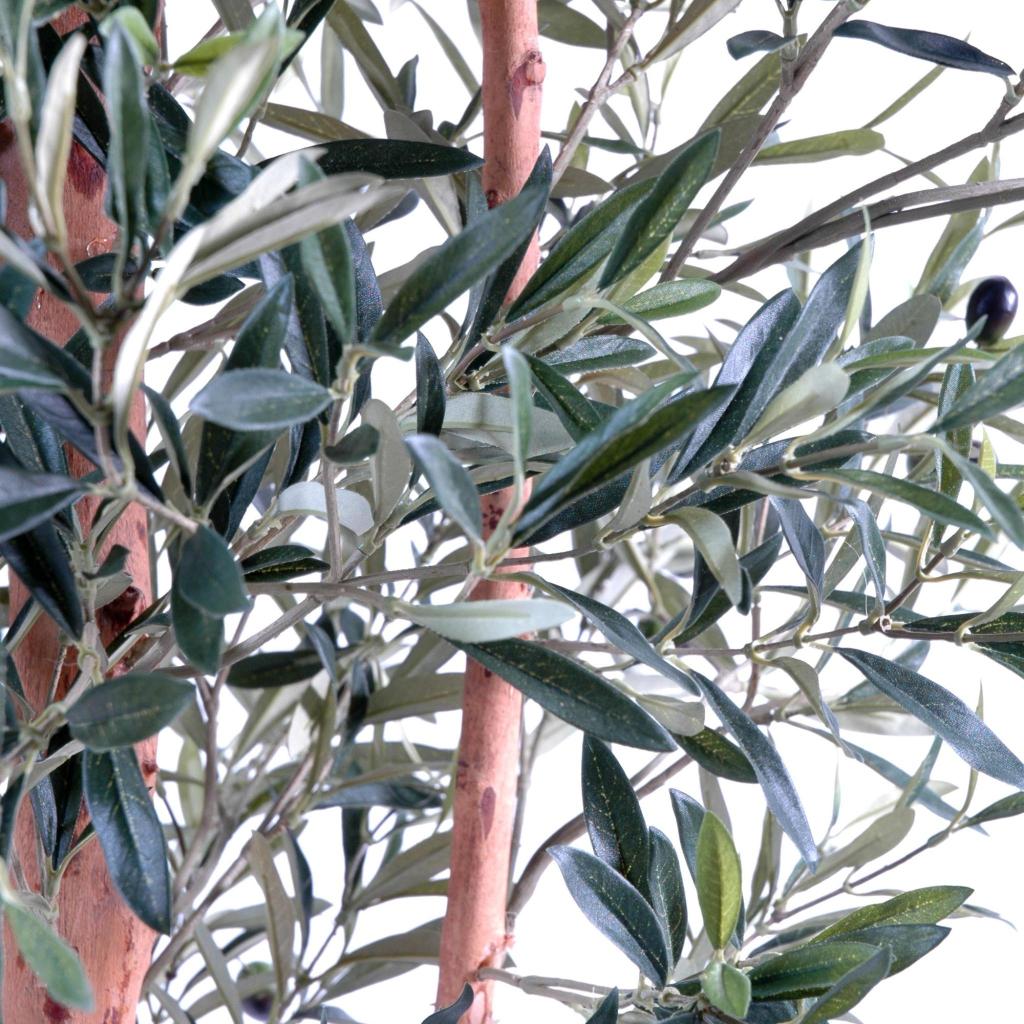 Le tronc noueux, élément incontournable de cet olivier, est fabriqué à partir de bois véritable, apportant ainsi une authenticité incomparable à l'ensemble. Le feuillage en tergal, de haute qualité reproduit à merveille les délicates feuilles d'olivier à la perfection pour un rendu visuel impressionnant.