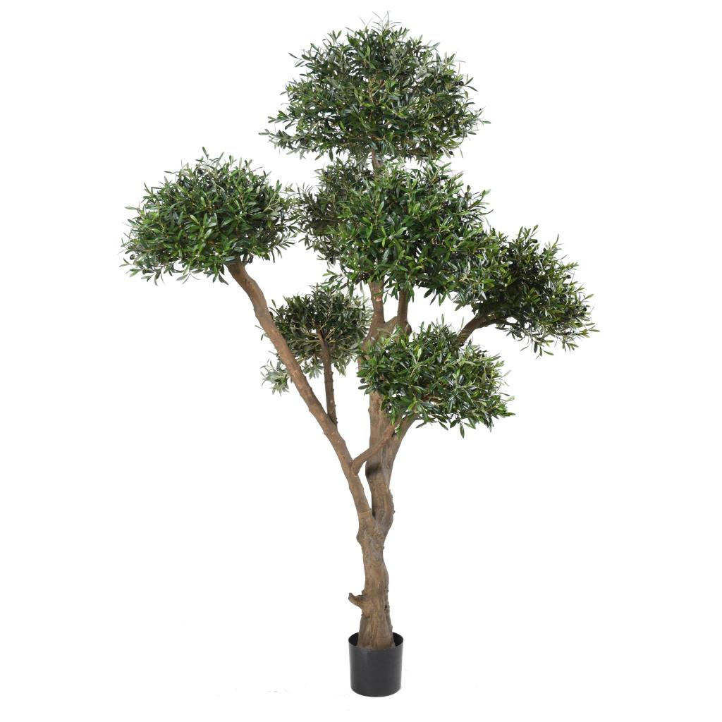 L'Olivier Bonsaï Artificiel Multi Tête, d'une hauteur de 270 cm et d'une largeur de 190 cm, se distingue par sa majesté esthétique et son réalisme verdoyant. Réalisé avec soin en fibres et bois pour le tronc, puis en tergal pour le feuillage, il imite à la perfection la splendeur naturelle de l'arbre méditerranéen, sans exiger son entretien.